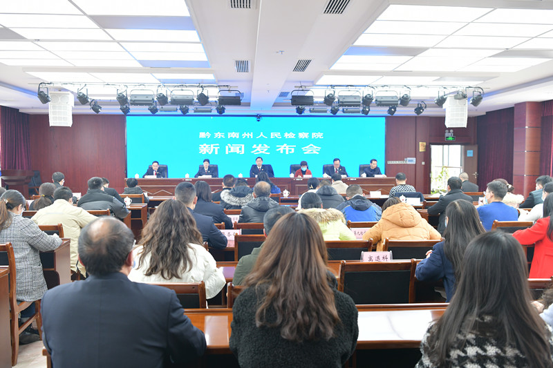 12月25日上午,黔东南州人民检察院举行“决胜脱贫攻坚 彰显检察力量”新闻发布会。该院党组副书记、常务副检察长龙江平同志通报全州检察机关服务保障脱贫攻坚工作情况,岑巩县检察院和台江县检察院就两院典型经验和做法进行发布。省检察院脱贫攻坚专项办副主任、第八检察部副主任吴开艳同志、州扶贫办副主任杨检同志应邀参加新闻发布会。