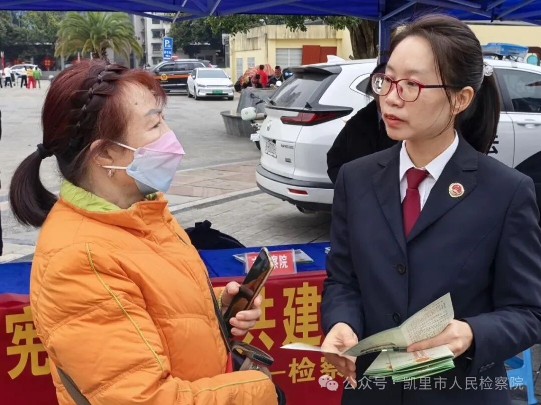 12月5日,黔东南州检察院联合凯里市检察院的干警们走进万博广场,开展了一场接地气、有温度、干货足的宪法宣传活动,将法律知识与贴心服务精准送到群众身边,让“人人学宪法、懂宪法、守宪法、用宪法”的氛围在城市街头愈发浓厚。