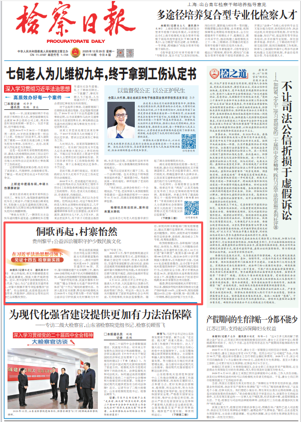 “保护传统村落、民族村寨和乡村风貌”“健全非物质文化遗产保护传承体系”是“十四五”规划的重要内容。为深入落实有关部署,黔东南州检察机关自2025年1月起开展为期一年的“检察公益诉讼守护民族文化村寨助力乡村振兴”专项工作。