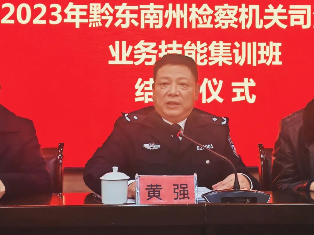 12月5日,黔东南州检察机关司法警察业务技能集训班举行结业仪式。省检察院司法警察总队总队长黄强,州检察院党组成员、政治部主任陆祖贵出席。全州检察机关司法警察46人参加结业。