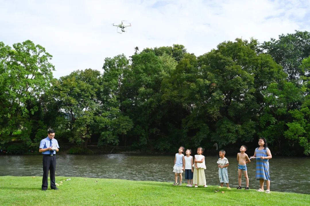 检察干警使用无人机在重点河段、水库及事故易发水域进行巡航喊话,劝导未成年人远离危险水域。同时,无人机循环播报防溺水安全知识,将 “六不准” 等核心内容清晰传递到村庄角落、水域周边,让安全警示声穿透树林、越过田埂,确保宣传无死角。对于重点易溺水区域开展安全隐患排查,提醒相关职能部门及时消除隐患,堵塞管理漏洞,拧紧暑期“安全阀”。