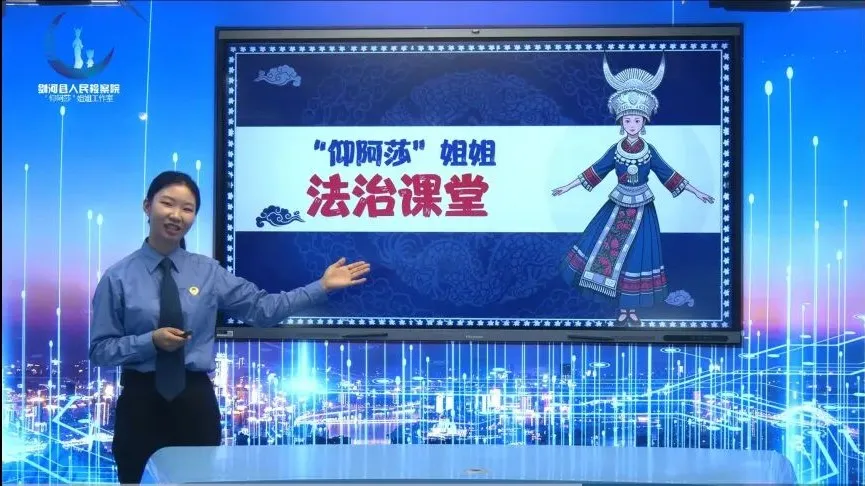 近日,剑河县中小学法治课一站式平台暨“仰阿莎”说法新媒体室在剑河县检察院完成建设并投入使用,县第三中学62个班级3600余人在教室同步听了“仰阿莎”姐姐王福湘的新学期线上法治第一课。剑河县委政法委、县法院、县司法局和县教育局相关领导和负责人共同出席并观看首堂中学法治课线上直播。