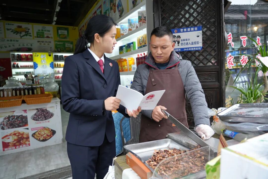 与商户深入交流,宣传宪法法律对社会主义市场经济的保障作用,解读优化营商环境政策,普及消费者权益保护、诚信经营等相关法规,增强商户依法经营、规范管理的意识。