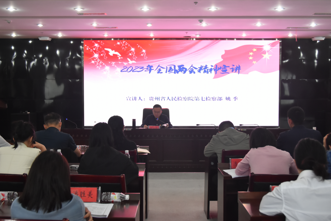 省检察院第七检察部主任姚季同志以“2023年全国两会精神宣讲”为主题,围绕两会精神解读、最高检会议和全省领导干部会议学习两会精神情况、检察机关如何贯彻落实两会精神等内容上专题党课。