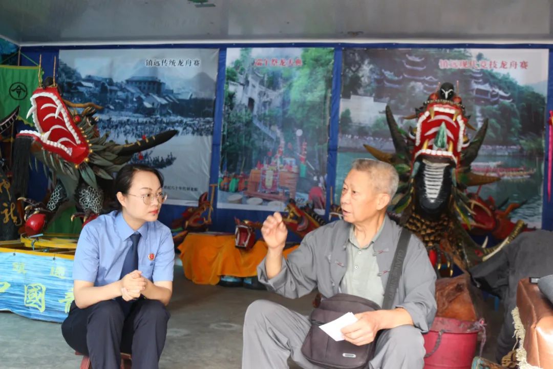 74岁的皇安东是国家级非遗项目“镇远赛龙舟”的州级非遗传承人,他雕刻的龙舟龙头惟妙惟肖、栩栩如生。今年,皇安东组织雕刻的巨型龙头打算申请吉尼斯世界纪录。他告诉来访的检察干警,往年州级传承人的津补贴都要到下一年年末才发放,但今年3月份他就收到了这笔津贴。当知道是检察建议发挥关键作用以及检察机关开展的系列非遗保护工作后,他说:“没想到检察院在非遗保护方面做了那么多工作,做得好!看得出来检察院是真的在抓保护,有你们一起发力,我也更有信心继续努力把这些手艺传承发扬下去。”