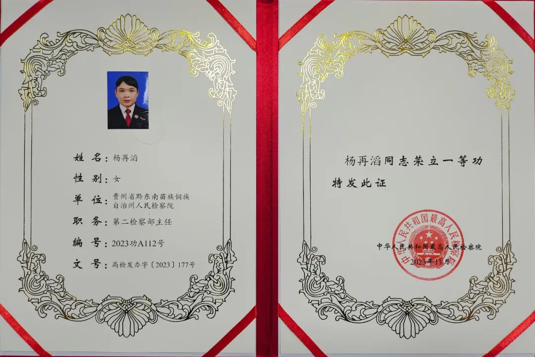 12月20日,最高人民检察院召开全国检察机关队伍建设工作会议暨第十次先进集体、先进个人表彰大会。黔东南州人民检察院第二检察部主任杨再滔荣获最高人民检察院记个人一等功表彰。