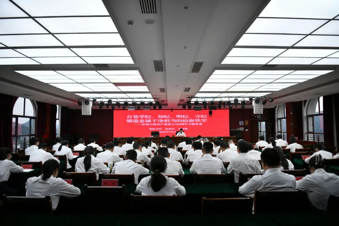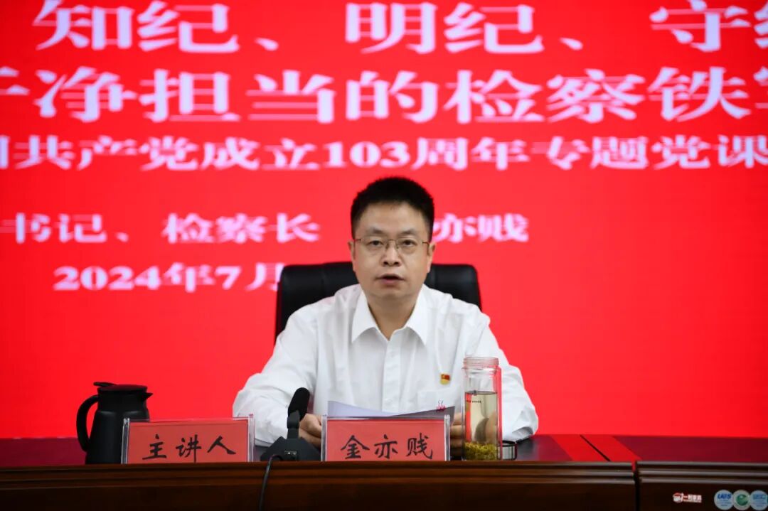 下午,院党组书记、检察长金亦贱为全体党员干部开展以“自觉学纪、知纪、明纪、守纪,锻造忠诚干净担当的检察铁军”为主题的专题党课。