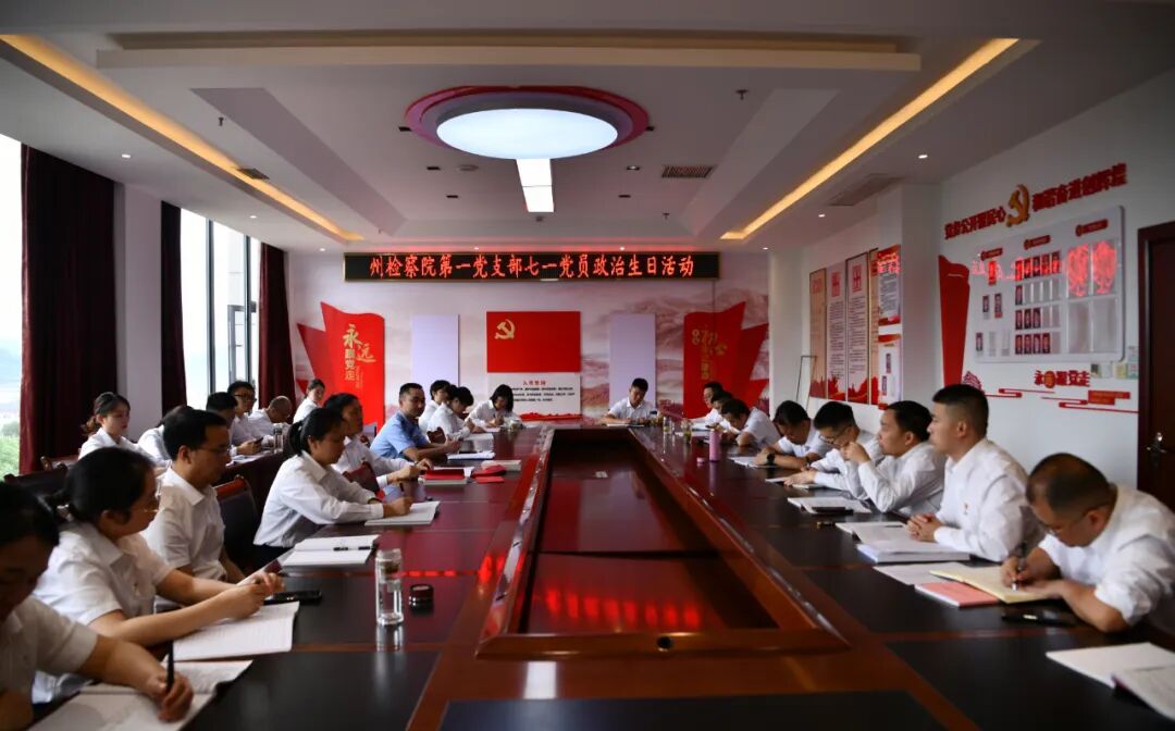 院党组书记、检察长金亦贱同志领誓,全体党员面向党旗重温入党誓词。通过重温誓词,提醒党员同志牢记对党忠诚的誓言,再次引导党员同志深刻铭记党的宗旨、使命和责任。